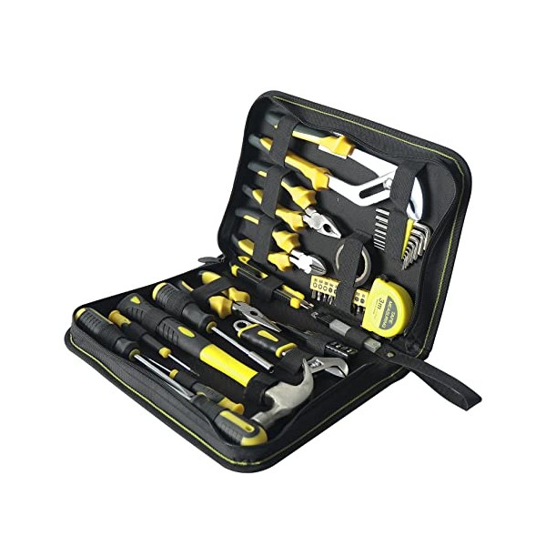 - Complete Tool Kit: Basic tool combination for women and men: Rip Claw Hammer, Adjustable Wrench, Utility Knife, Measure Tape Rule,Magnetic Precision Screwdriver Set, Digital Voltage Tester, PVC Insulating Tape , Pliers, Allen Wrench Set.