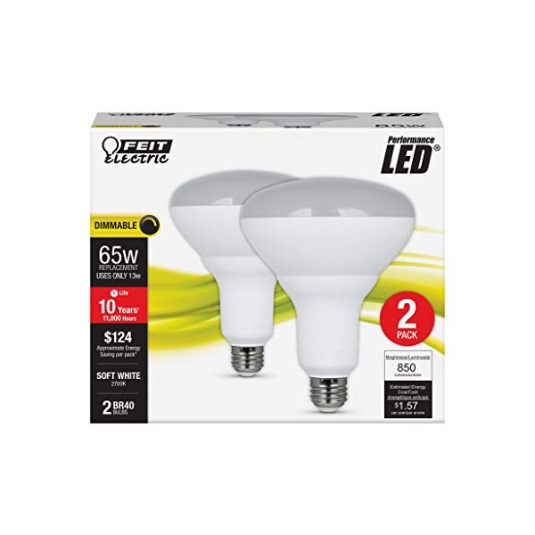 Feit BR40 LED 2-Pack 75 Watt Replacement, Soft White, Uses Only 15.5 Watts