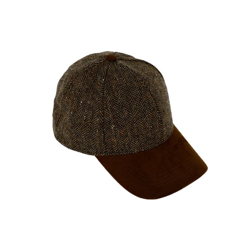 fiebig Herringbone Wool Baseball Cap, 6-Panel Cap with Elastic Closure, brown