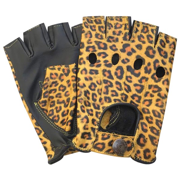 Fingerless Half-Finger Premium Driving/Cycling/Motorcycle Gloves in Real Leather 309, leopard-yellow