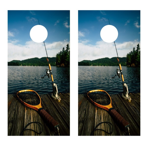 Fishing on The Dock Cornhole Decal WRAP Set (Laminated)