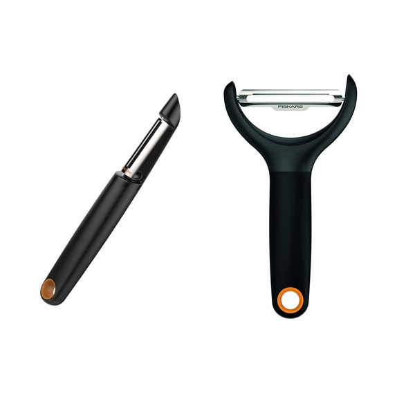 Fiskars - Vegetable Peeler Duo Pack - Total Length: 15 cm - Steel Plastic - Functional Shape - Black