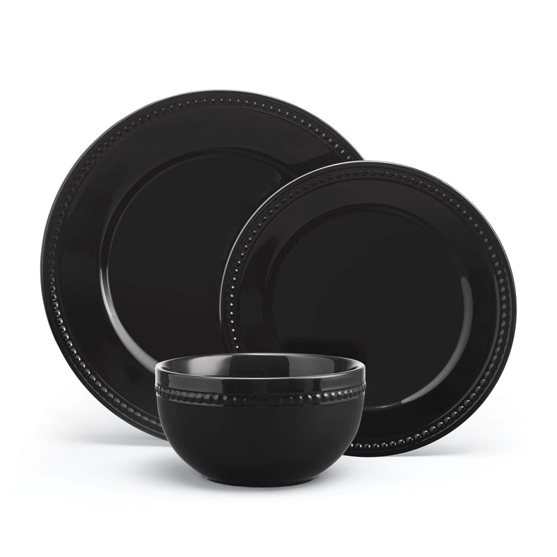 Fitz & Floyd Fitz and Floyd Bead Classic Black 12 Piece Dinnerware Set, Service for 4