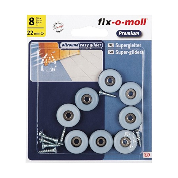 fix-o-moll Universal PTFE, 22 mm Rubber Castor Bolt 8 Pieces, Grey
