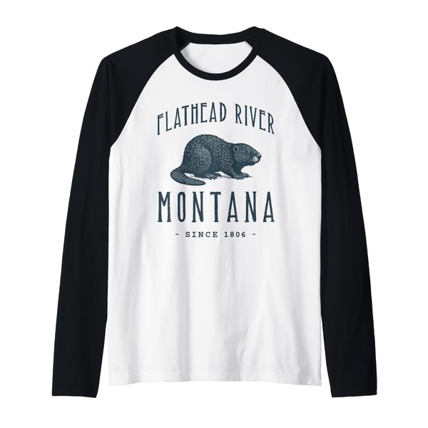 Flathead River, Beaver Rodent Design Raglan Baseball Tee