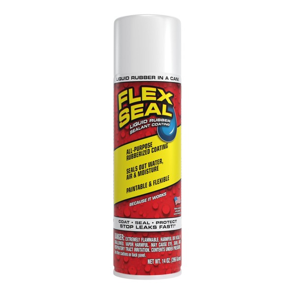Flex Seal, 14 oz, White, Stop Leaks Instantly, Waterproof Rubber Spray On Sealant Coating, Perfect for Gutters, Wood, RV, Campers, Roof Repair, Skylights, Windows, and More
