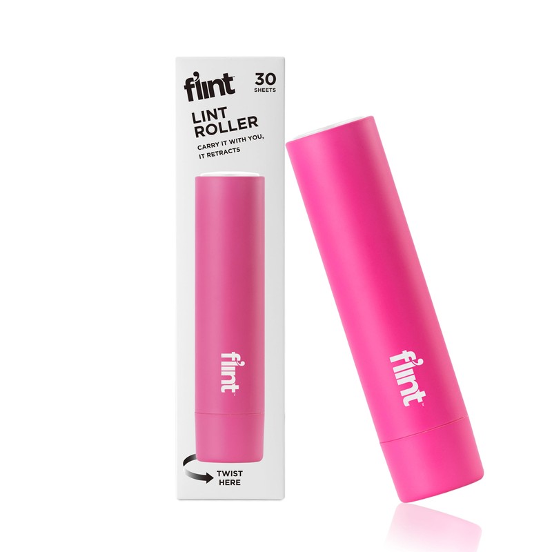 Flint Classic Pink Retractable Mini Lint Roller with 30 Extra Sticky Sheets, Small and Portable Lint Roller, Ideal Pet Hair Remover, Travel Lint Rollers for pet Hair Extra Sticky