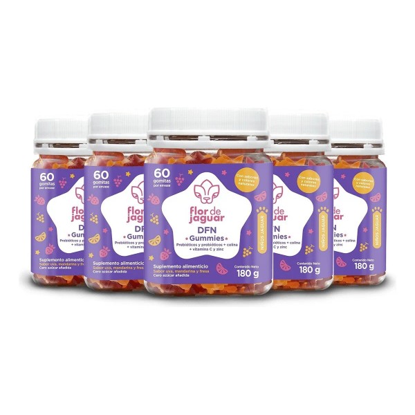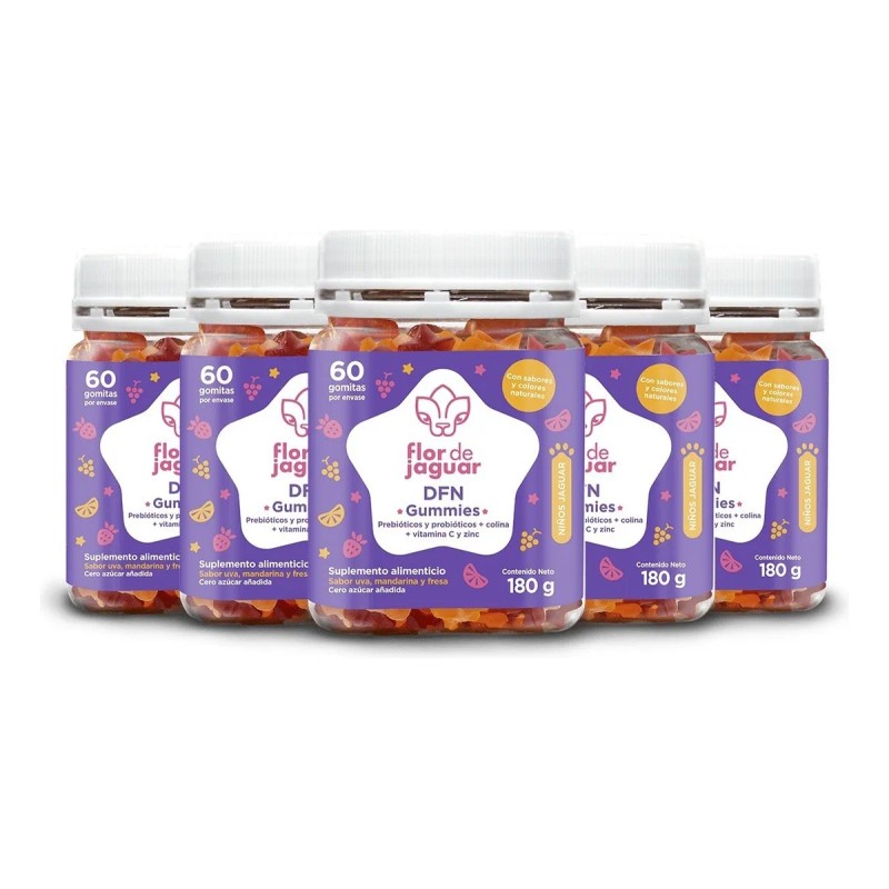 Flor De Jaguar | Pack 5 Dfn Gummies, 180 Gr Sabor Mandarina, Uva Y Fresa