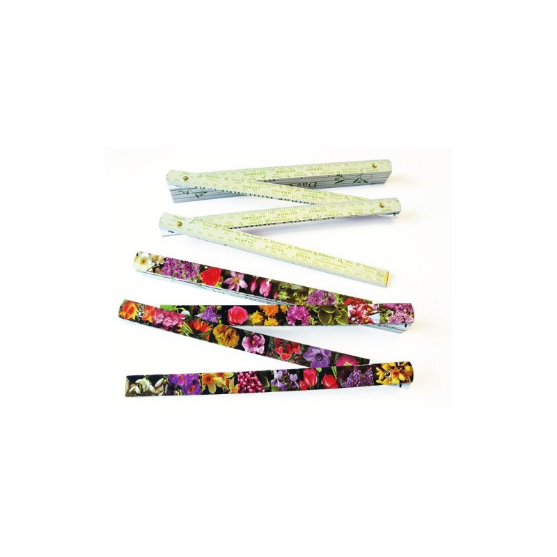 - Classic wooden folding ruler with 80 photographs of flowers arranged by the season. Latin and common names corresponding on the back side.Made