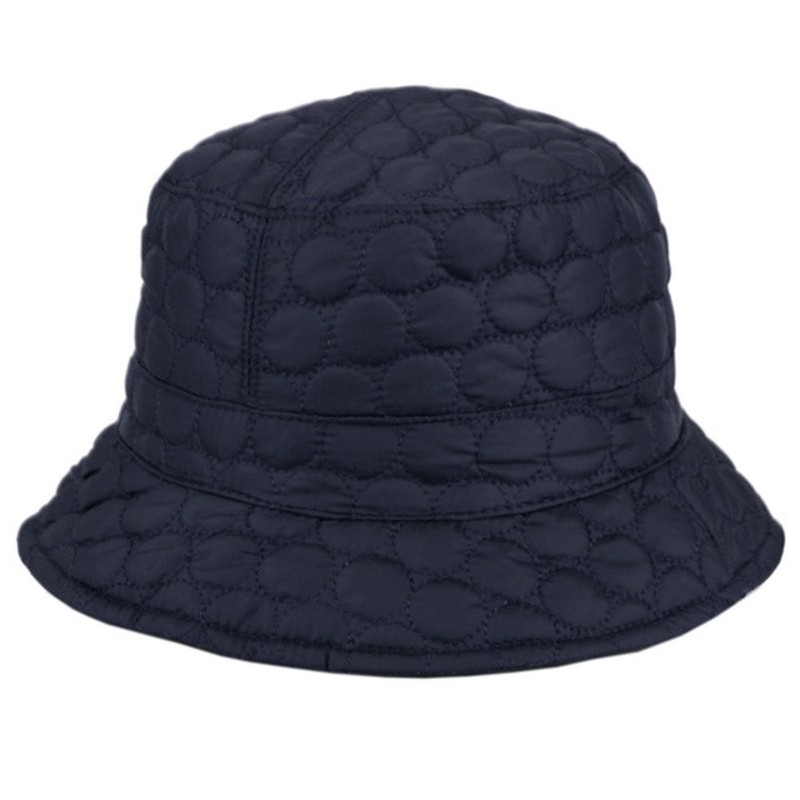Foldable Water Repellent Quilted Rain Hat w/Adjustable Drawstring, Bucket Cap - Navy