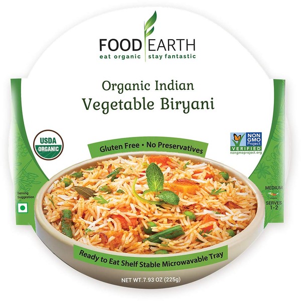 **FOOD EARTH - Organic Indian Vegetable Biryani and not Indian Variety Pack.** Food Earth's delicious Organic Classic North Indian recipe features delicate fluffy rice from the Himalayan foothills, mixed with vegetables and aromatic spices, prepared with love, to give your taste buds a nutritious and flavorful experience! Try out our other traditional curry packs too! **FEATURES:**