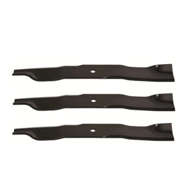 - Each blade is 21" long, center hole is 5/8", width 2-1/2", thickness .250", 0" offset, 1" lift