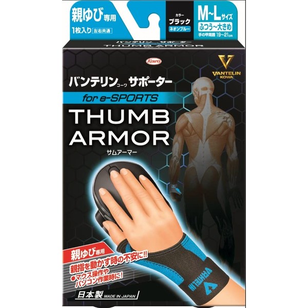 バンテリンコーワサポーター親ゆび専用 for e-SPORTS ふつう~大きめ/M~Lサイズ ブラック×ネオンブルー