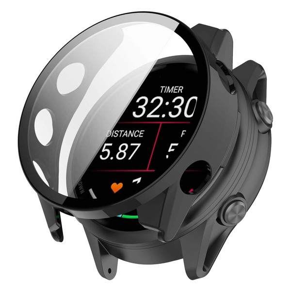 For Garmin Forerunner 970 47mm ケース YAJOJO 保護 ガラスフィルム 一体型 カバー スマートウォッチ 3D曲面強化フィルム 強化エッジタッチ 防擦り傷 防衝撃 落下防止 全面保護 着脱簡単 【ブラック】
