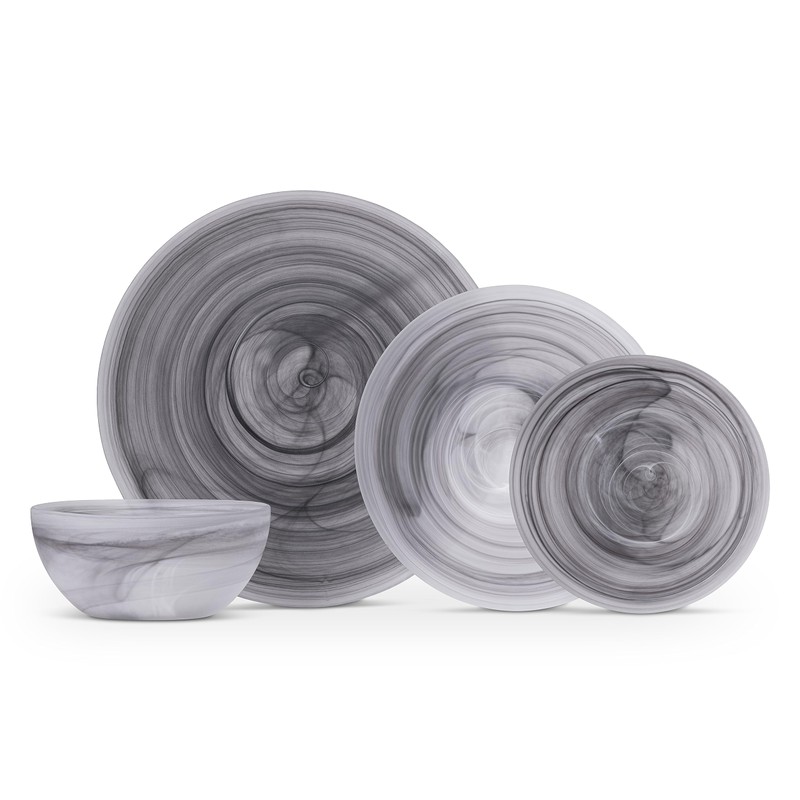 Fortessa La Jolla Glass 16 Piece Dinnerware Set, Service for 4, Grey