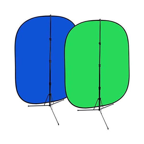 Fotodiox 5'x7' Collapsible Chromakey Green + Blue 2-in-1 Background, Backdrop kit w/Stand Support