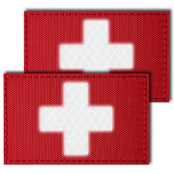 FR Reflective First Aid Patch, IR Reflective Red Cross Patch Hook & Loop Tactical Medic Patch for Caps Bags Vests Military Uniforms(Rectangular) - 2Pcs