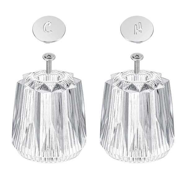 Framendino, 2 Pack Shower Knobs Replacement Universal Hot and Cold Clear Acrylic Handles Faucet Handle