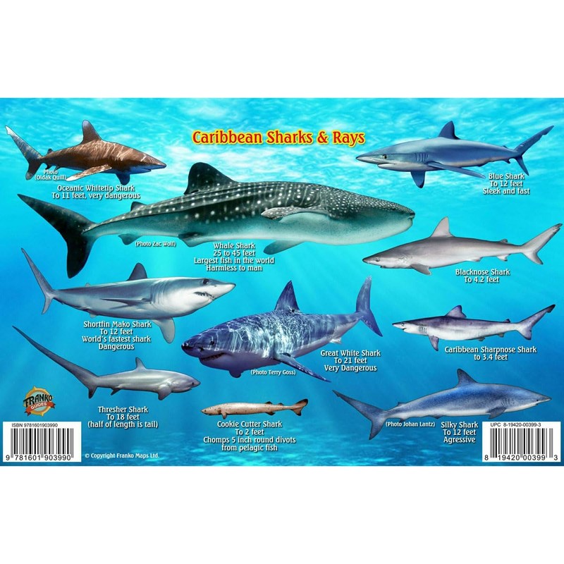 Frankos Caribbean Shark Identification Card 8.5 in by 5.5 in