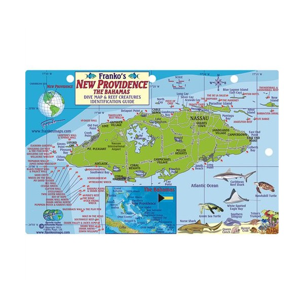 FrankosMaps New Providence the Bahamas Mini-map & Reef Creatures Identification Guide - Fish ID