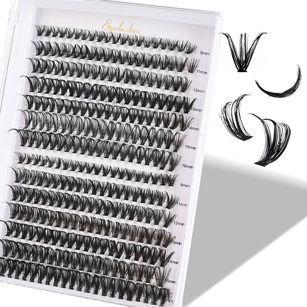 FREEORR Lash Extension, 280Pcs DIY Lash Clusters,Natural D Curl Cluster Extensions, 9-16mm Clusters Eyelash Extensions, Wispy Fluffy Individual Lashes for Self Application