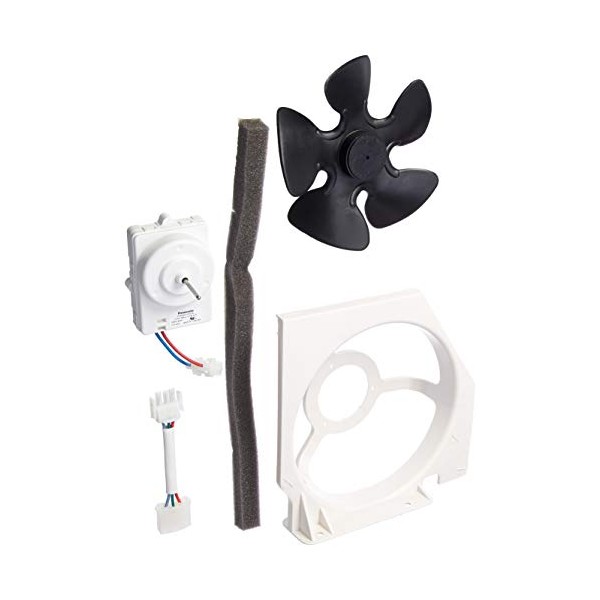 - Frigidaire 5303918774 includes condenser fan motor, condenser fan shroud, condenser fan blade, foam tape, (2) mounting screws, and instruction sheet