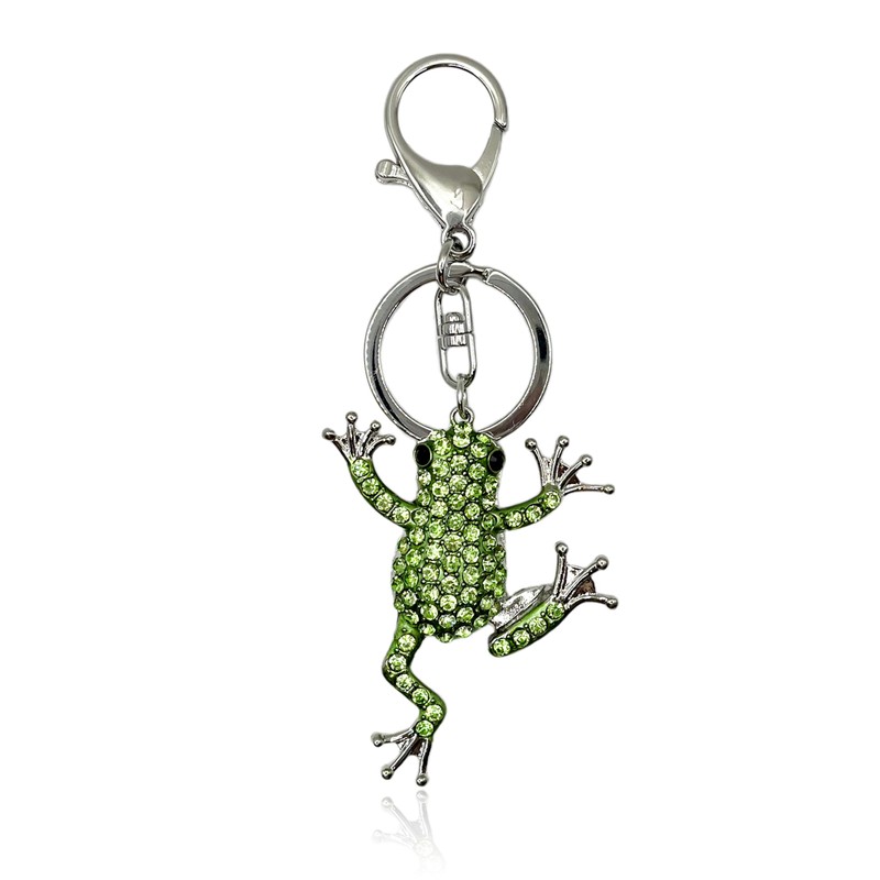 Frog Keychain Bling Bag Charm Happy Toad Rhinestone Crystal Purse Charm (Green)
