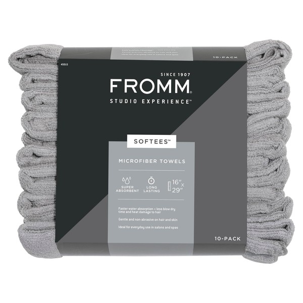 Fromm Softees Microfiber Salon Hair Towels for Hairstylists, Barbers, Spa, Gym in Grey, 16" by 29", 10 count Perfect Hair Care Towel for Drying Curly, Long, Wavy Hair