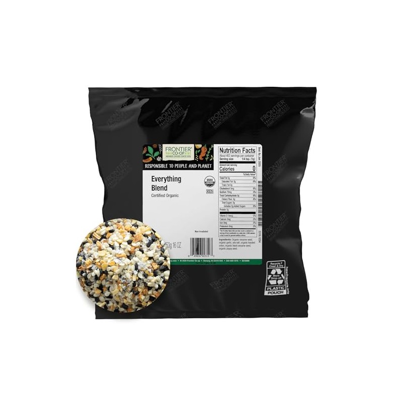 - EVERYTHING BLEND - Frontier Co-op Everything Blend takes the beloved savory flavors of garlic, salt, onion, and a medley of seeds to a whole new level, perfecting this trending blend that goes beyond bagels.