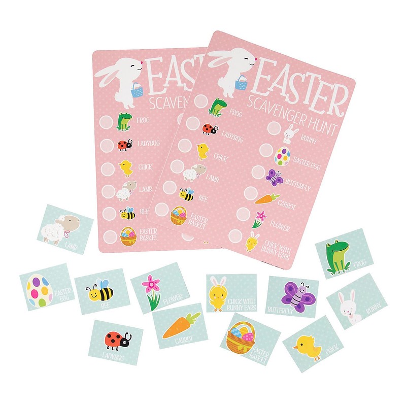 - When the Easter egg hunt is over and the chocolate bunnies have been devoured, keep the Easter fun going with this exciting scavenger hunt! First, have an adult tear off and hide each of the included object cards featuring such spring objects as flowers, bunnies and Easter baskets. Then hand each little bunny at your Easter event a scavenger sheet and let the hunt commence! Cardstock. 6" x 8" Includes 12 game boards and one tearaway sheet.
