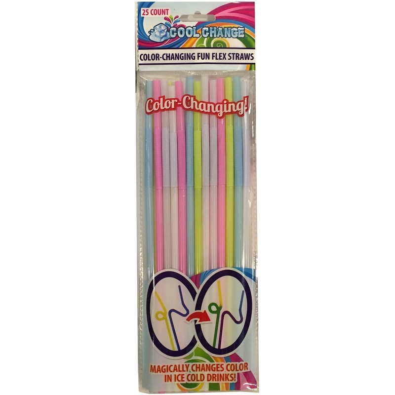 - Fun Flex Color Changing Disposable Long Straws That Stretch and Bend - Slim