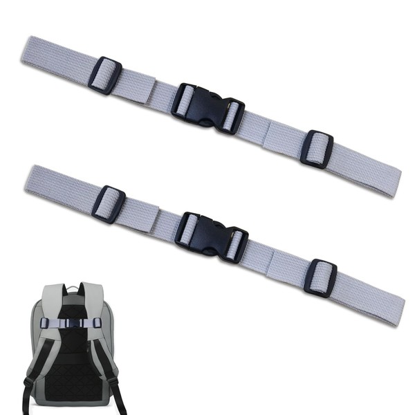 FuninCrea 2 Pair Adjustable Backpack Chest Strap, 2.5cm Backpack Pack Straps Quick Release Backpack Webbing Strap Backpack Anti-Slip Strap for Backpack Rucksack Luggage (grey)