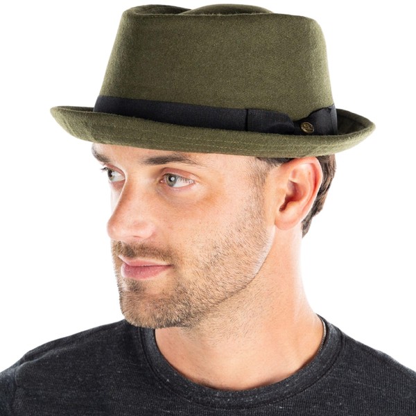 - GREAT QUALITY: Made from 100% pure wool, this fedora provides superior insulation, keeping you cozy during cooler seasons. The natural breathability of wool ensures comfort in various weather conditions, making it an ideal choice year-round. Featuring a diamond shape with a pinched crown and grosgrain band, this fedora is crafted with a focus on quality that you can see and feel. The interior is lined with soft gentle cotton, adding a layer of plush comfort against your skin. Hand wash only.