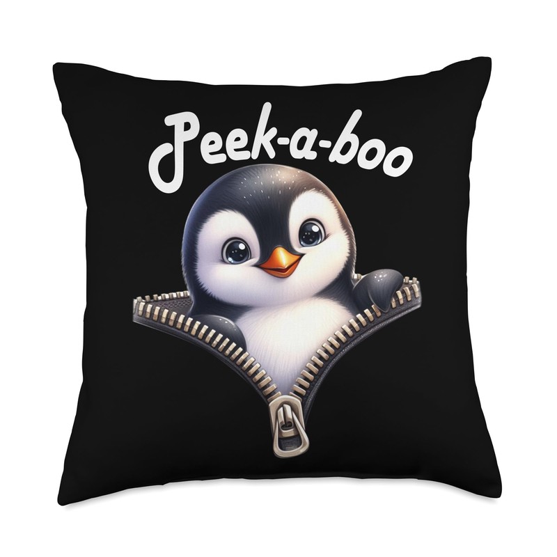 Funny - Peek-a-boo - Penguin Throw Pillow