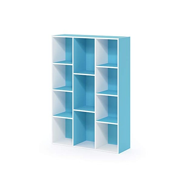 Furinno Luder Bookcase / Book / Storage , 11-Cube, White/Light Blue