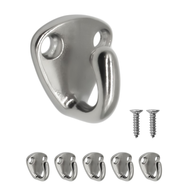 Fuxxer® 5 x Solid Stainless Steel Hooks, Wall Hooks, Marine Hooks, Set of 5, Silver