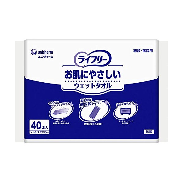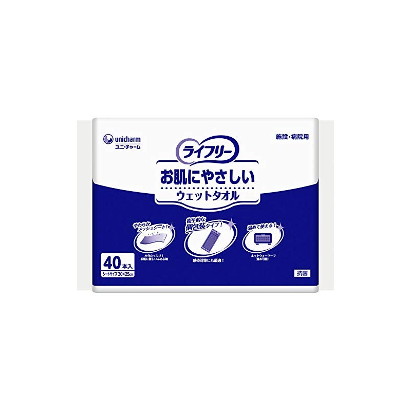 Supports infection prevention and skin care. Individually packaged, so you can take them out hygienically. Bags won't come apart when opened, making them convenient for disposal. Shake the sheet and spread it easily with one hand. It contains plenty of moisture, so it can be wiped gently without rubbing it. Can be used in hot cabinets or microwaves.