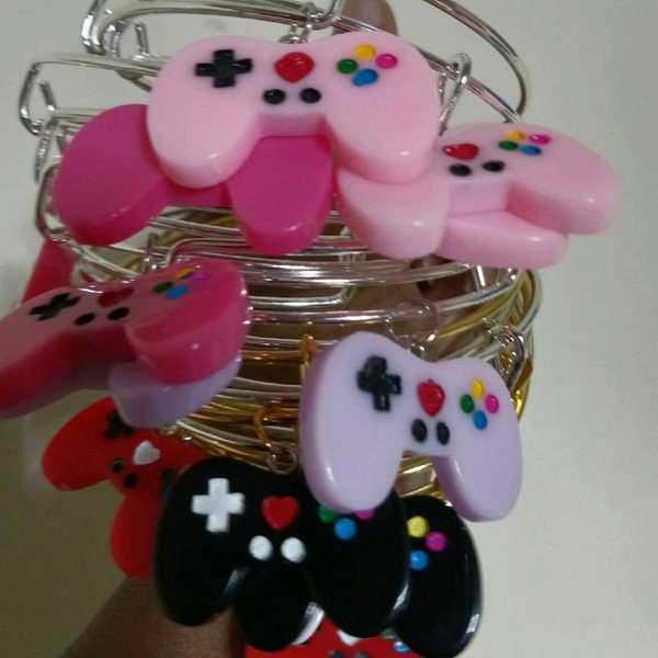 Get ready to level up your style with our Gamer Bangles! These stunning bracelets are the perfect accessory for any gaming enthusiast. Crafted with care, these bangles feature eye-catching designs that showcase your passion for gaming in a chic and trendy way. Whether you're a casual gamer or a pro, these bangles are sure to turn heads and start conversations. Made with high-quality artificial gemstones, our Gamer Bangles are durable and long-lasting. The sleek design makes them perfect for everyday wear or special occasions. Show off your love for gaming in style with our Gamer Bangles! Get yours today and take your fashion game to the next level! you will receive random colors! every order comes with a freebie and some yummy candy.