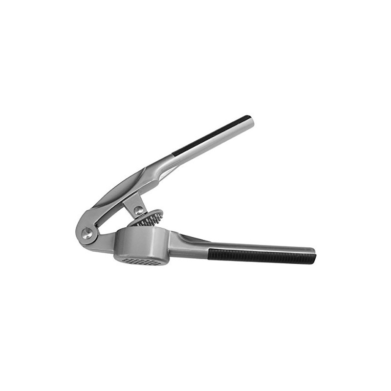 BC-65458 Features: -Nickel finish. -Presses garlic, ginger, nuts, and spices to a fine size. -Works best with peeled garlic. -Silver body with black non slip handle grips. -Durable for everyday use. -Highly functional. Product Type: -Press. Finish: -Nickel. Operation: -Manual. Item Type: -Handheld. Soft Grip Handle: -Yes. Dimensions: Overall Height - Top to Bottom: -1". Overall Width - Side to Side: -8.5". Overall Depth - Front to Back: -6.5". Overall Product Weight: -0.58 lbs.