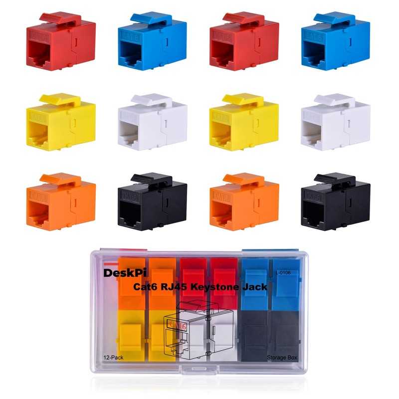 GeeekPi Cat6 RJ45 Keystone Jack Insert, 12-Pack Multi-Colour Set, Gold-Plated Pins