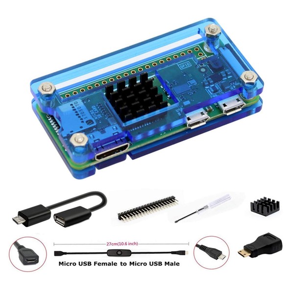 GeeekPi Pi Zero 2 W Case, 7 in 1 Basic Starter Kit with Acrylic Case, 20Pin GPIO Header, OTG Cable, Switch Cable, HDMI Adapter, Heatsink for Raspberry Pi Zero 2 W Case/Zero W Case (Blue)