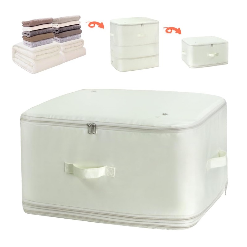 - MATERIAL UPGRADE: Our blanket organizer bags are made of thickened composite fabric with strong load-bearing capacity and tear-resistant; upgraded zipper for smooth closure; four thickened carrying handles for easy handling; two ventilation holes to accelerate air discharge