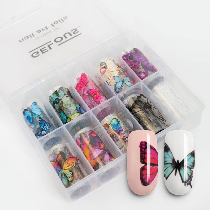 Style up your manicure with this ten pack of The Butterfly Effect Nail Art Foils. These Foils are printed on a thin, flexible, tear-resistant film and are easily transferred onto your nails using Gelous Foil Gel.