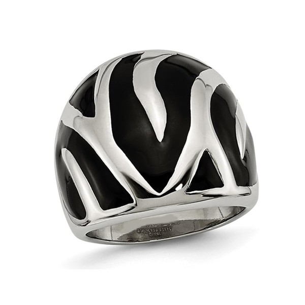 Gem And Harmony Black Eamel Stainless Steel Zebra Polished Ring