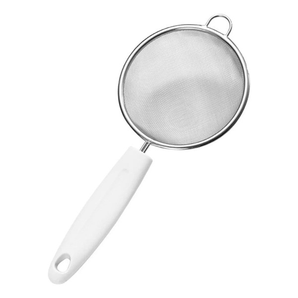 4. Filtra las impurezas: la cómoda y práctica cuchara desnatadora de malla fina para la cocina doméstica puede filtrar las impurezas en la leche de soja y los alimentos fritos.