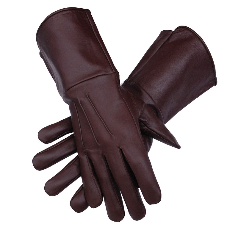Generic Genuine Leather Medieval Long Cuff Gloves (Brown, Medium)