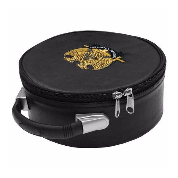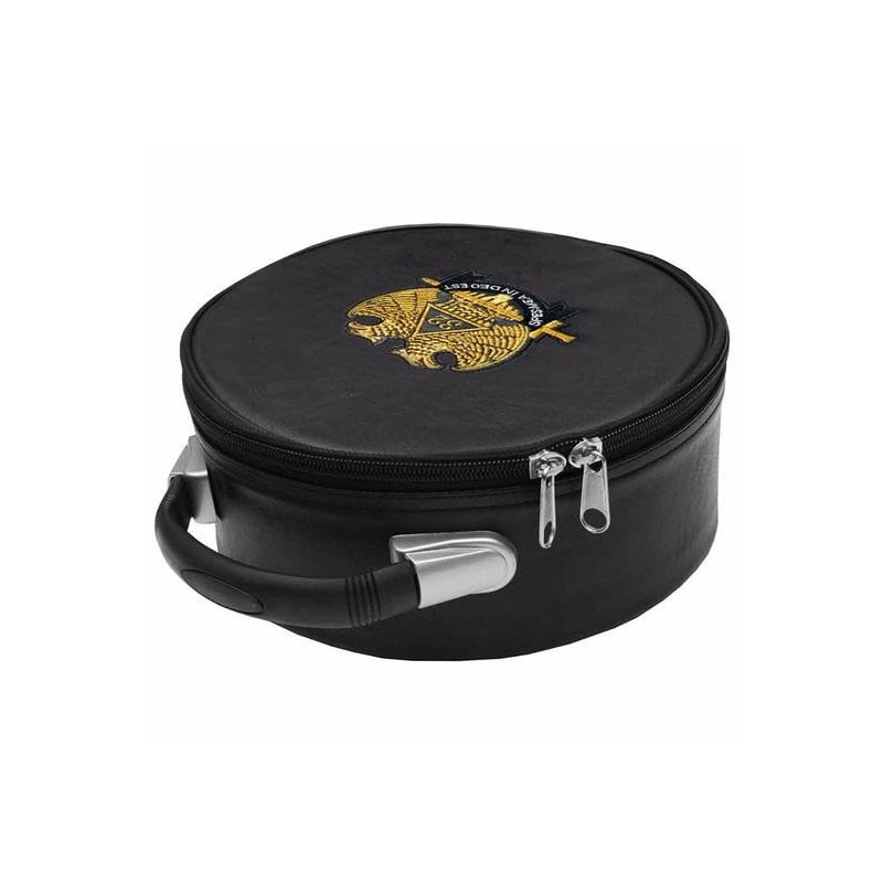 Generic Masonic Scottish Rite Double-Eagle 32 Degrees Hat/Cap Case Black leather, big, Blue