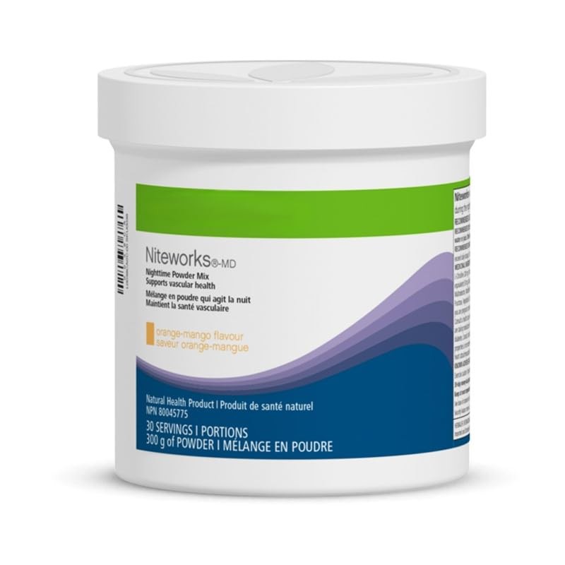 Niteworks is a refreshing powder mix that helps create more life-supporting nutrients during the night while you sleep. This powder is also beneficial in supporting vascular health and is rich in vitamins C and E. In powder form, it can be added to 240 ml of cold water, sparkling water, or juice. Simply mix 10 grams (two teaspoons or two scoops) of Niteworks powder into your beverage of choice for a nutrient-rich drink before bedtime. Support your body's natural processes and vascular health with this convenient powder supplement.