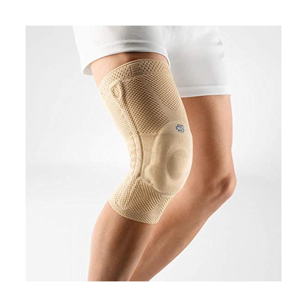 - Das integrierte Omega-Polster aus Silikon leitet den Druck von der Kniescheibe weg hin zu den Weichteilen im Kniebereich; dadurch verbessert es die Durchblutung und reduziert Ödeme und Schwellungen.