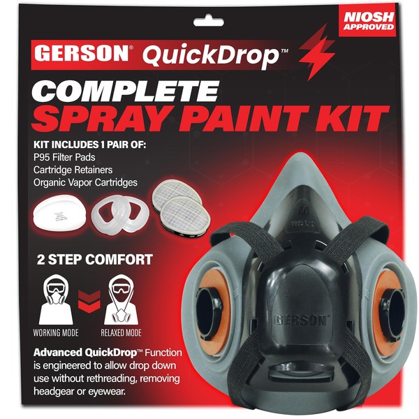 • Quick Turn and Valve Cover - As a reusable mask, this filtered mask has a 1/4 turn bayonet mask filter connector, as well as a downward valve cover to prevent overspray and moisture or fog buildup.